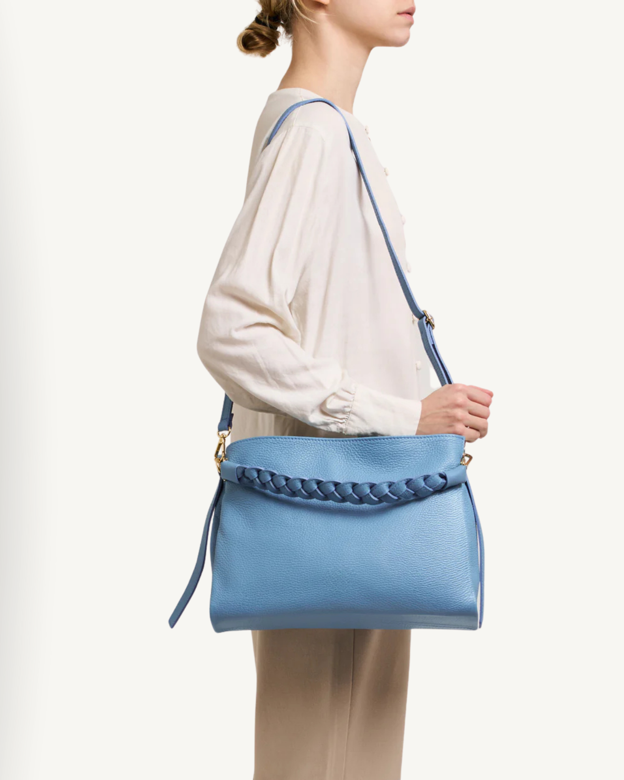 Aby utrzymać kształt swojej torebki, wypełnij ją papierem. Przechowuj ją wewnątrz dostarczonego woreczka do pielęgnacji w chłodnym, suchym miejscu. Unikaj kontaktu z wodą, tłuszczem, perfumami i kosmetykami.