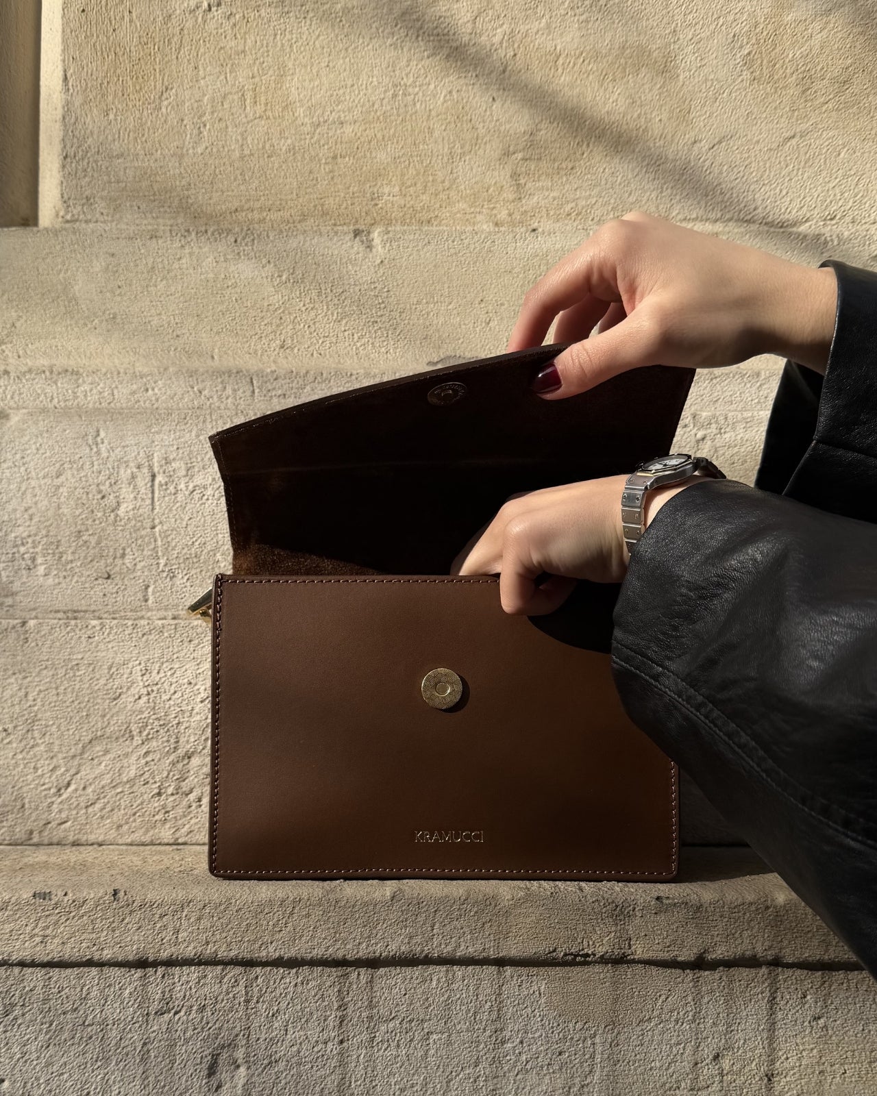 Przedmioty Kramucci są starannie wykonywane przez wykwalifikowanych rzemieślników i wykonane z najwyższej jakości skóry naturalnej, gwarantując unikalność i trwałą jakość. Ważne jest, aby zauważyć, że nawet najbardziej luksusowa skóra może wykazywać naturalne oznaki lub nieregularności, które powinny być doceniane jako cechy inherentne, a nie wady.